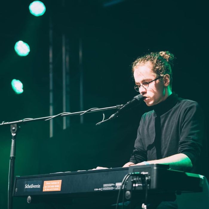 Simon Hotz sinniert liedermacherisch-versonnen über die Surrealität des Seins. Seine irrwitzigen bis traurigschönen Texte erweckt er mit Klavier, Gitarre, Akkordeon und unverkennbar üppigem Bariton zum Leben. Er formt Felsen und Täler aus Klang, durchzogen von einer poetischen Tragkraft, auf die man sich gern zum Schweben niederlegt.